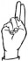 На ћирилици написано ДРИНКА НЕДИЋ састоји се из 11 слова [?]. Исписано ћириличном једноручном азбуком за глувонеме: